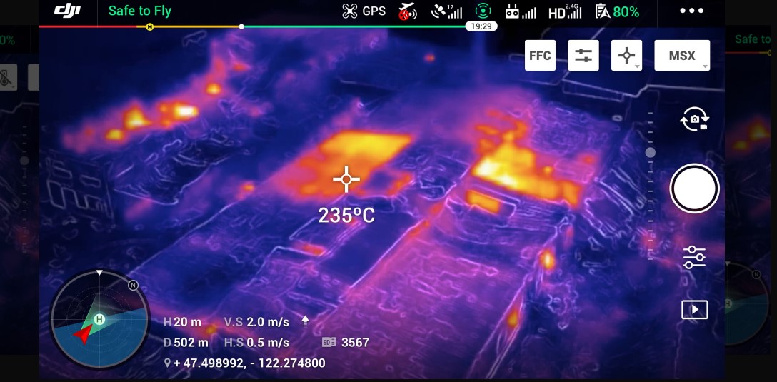 Благодаря фирменной технологии мультиспектрального смешивания FLIR MSX, квадрокоптер может вести съемку сразу с двух камер одновременно (тепловой и цифровой) и смешивать два снимка, в следствии чего вы получите высокодетализированную картинку и сможете увидеть мельчайшие детали теплового снимка, что не могут обеспечить тепловизоры даже с очень высоким разрешением тепловой матрицы.